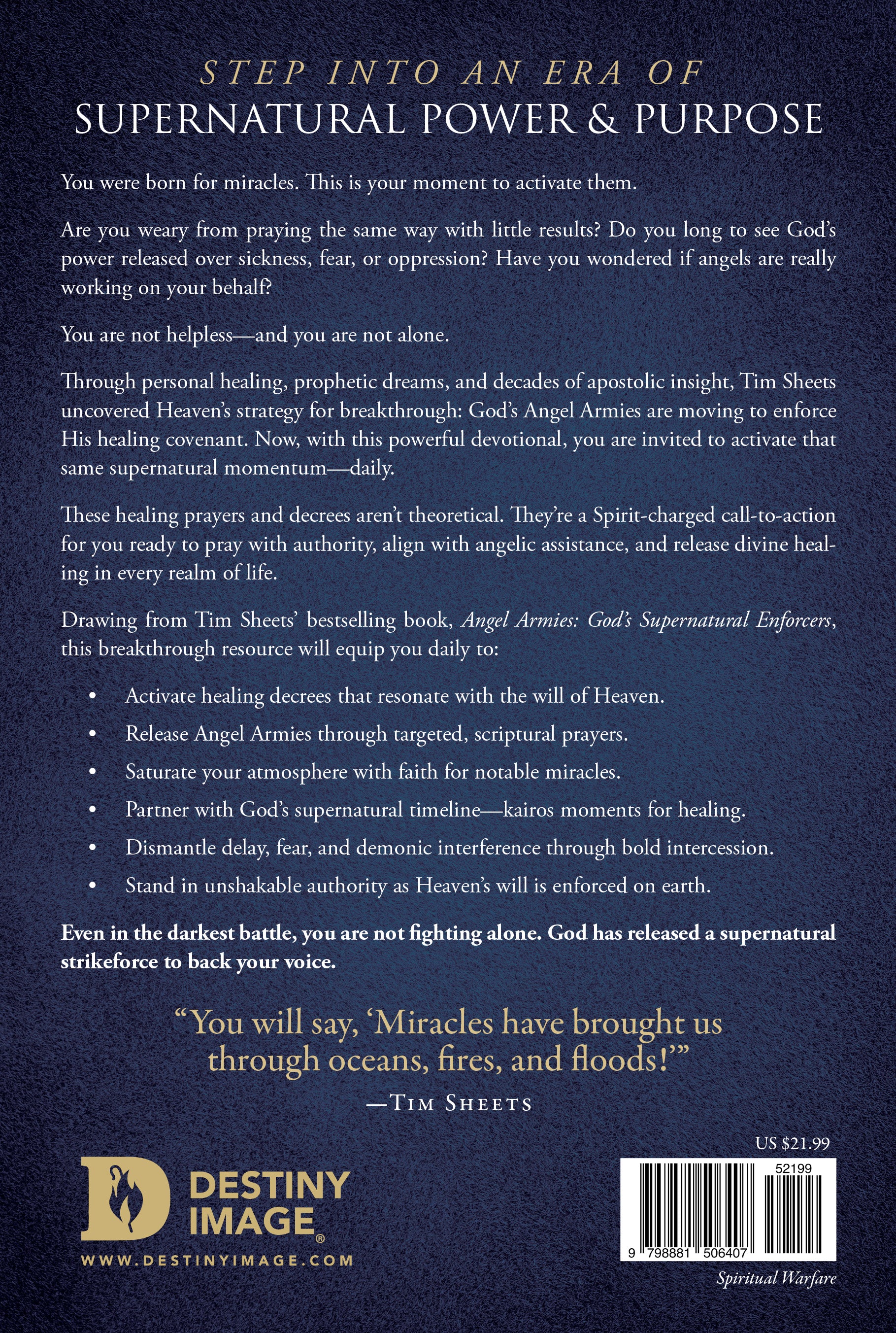 Through personal healing, prophetic dreams, and decades of apostolic insight, Tim Sheets uncovered Heaven's strategy for breakthrough: God's Angel Armies are moving to enforce His healing covenant. Now, with this powerful devotional, you are invited to activate that same supernatural momentum -- daily.